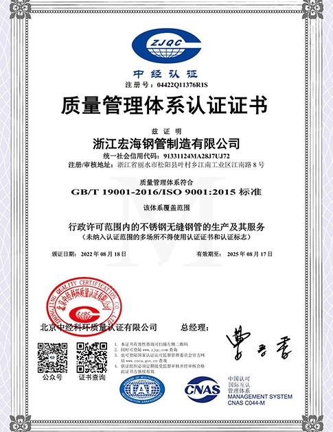 浙江宏海鋼管制造有限公司(前身為溫州市皓立不銹鋼有限公司)成立于2016年11月,公司注冊資金5180萬元,是一家集生產、銷售與一體的不銹鋼無縫鋼管及制品的民營企業。公司位于風景秀麗的甌江上游,有“江南桃源秘境”之稱的麗水市松陽縣江南工業區;交通便利,離松陽高速出口僅4公里,離衢寧鐵路松陽站僅2公里;占地面積30余畝,總投資9000多萬元。